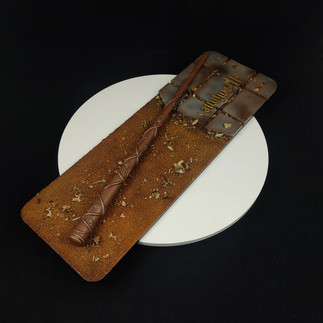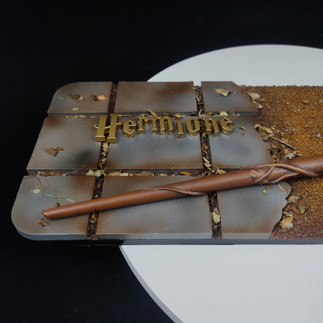 Varita mágica de Hermione Granger, varita de longitud de 38 centímetros, pintura personalizada dando realismo a relieves y sombras, base personalizada, también nombre del personaje utilizando fuente de Harry Potter, hecho en el mismo material empleado en la varita, PLA para impresoras 3D.